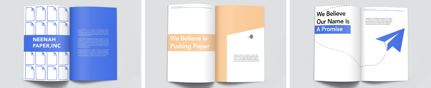 Now that you’ve got through the preliminary phase, you have to first think about how you want to present your report’s written content. While chunks of words may be unavoidable due to the nature of an annual report, you can, however, plan out ways to separate them with a visual hierarchy (layout) to improve readability.